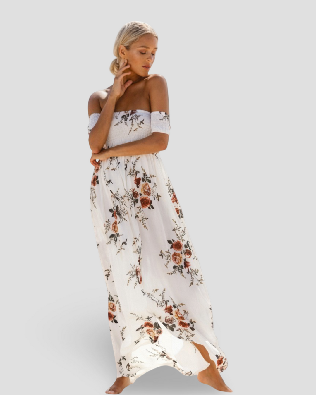 Mia - Dlouhé květinové šaty s odhalenými rameny