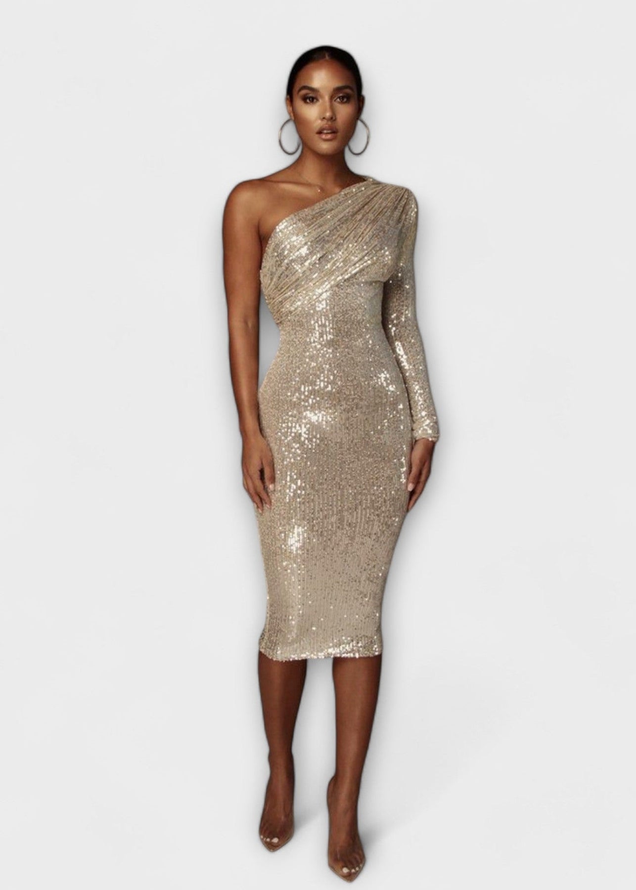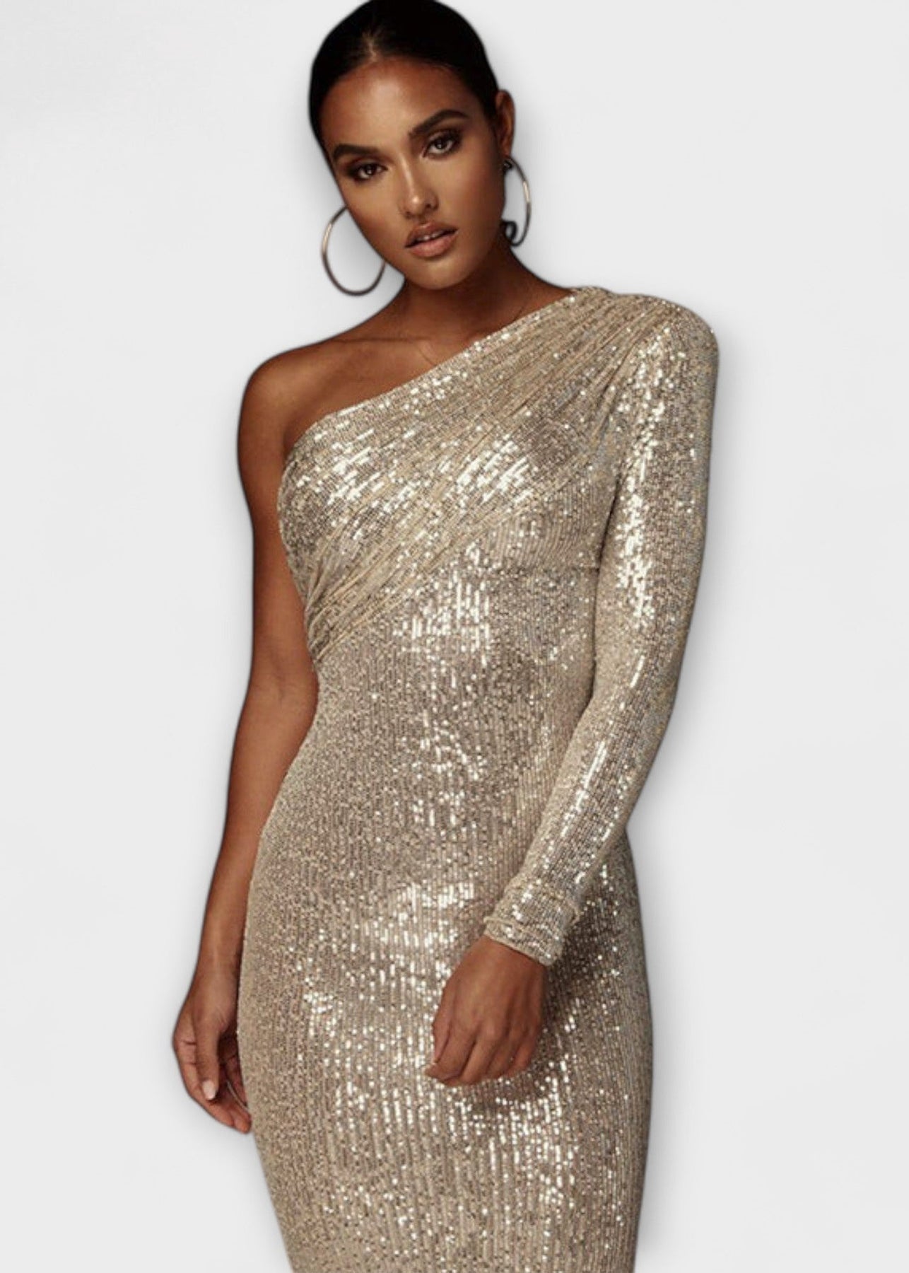 Ashcroft je ohromující asymetrické šaty na jedno rameno, vyrobené z lesklé tkaniny s flitry, které dokonale obepínají siluetu. Navrženy tak, aby přitahovaly pohledy, jsou ideální pro formální akce, večírky nebo jakoukoli zvláštní příležitost, kdy chcete zazářit.
