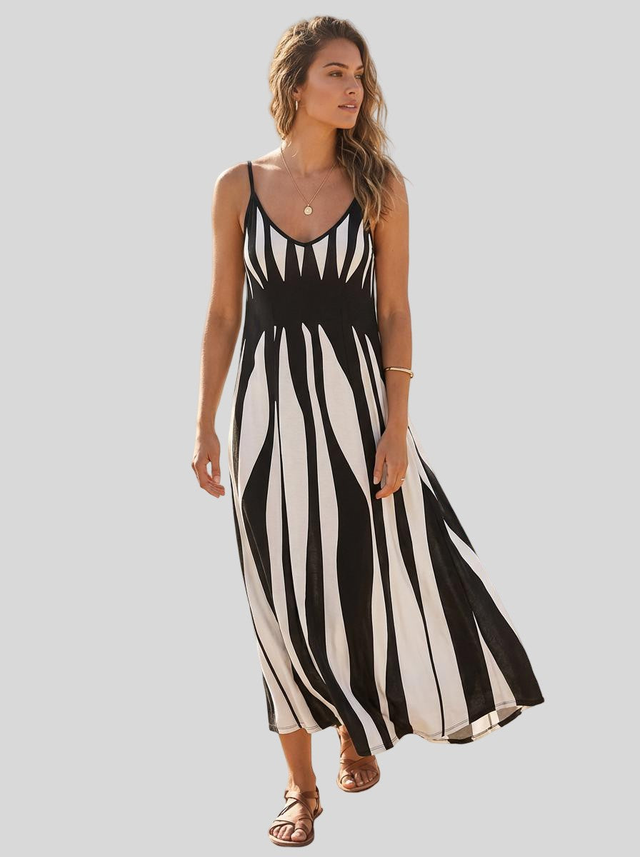 Linda - Letní maxi šaty pro ženy v boho stylu s pruhovaným potiskem