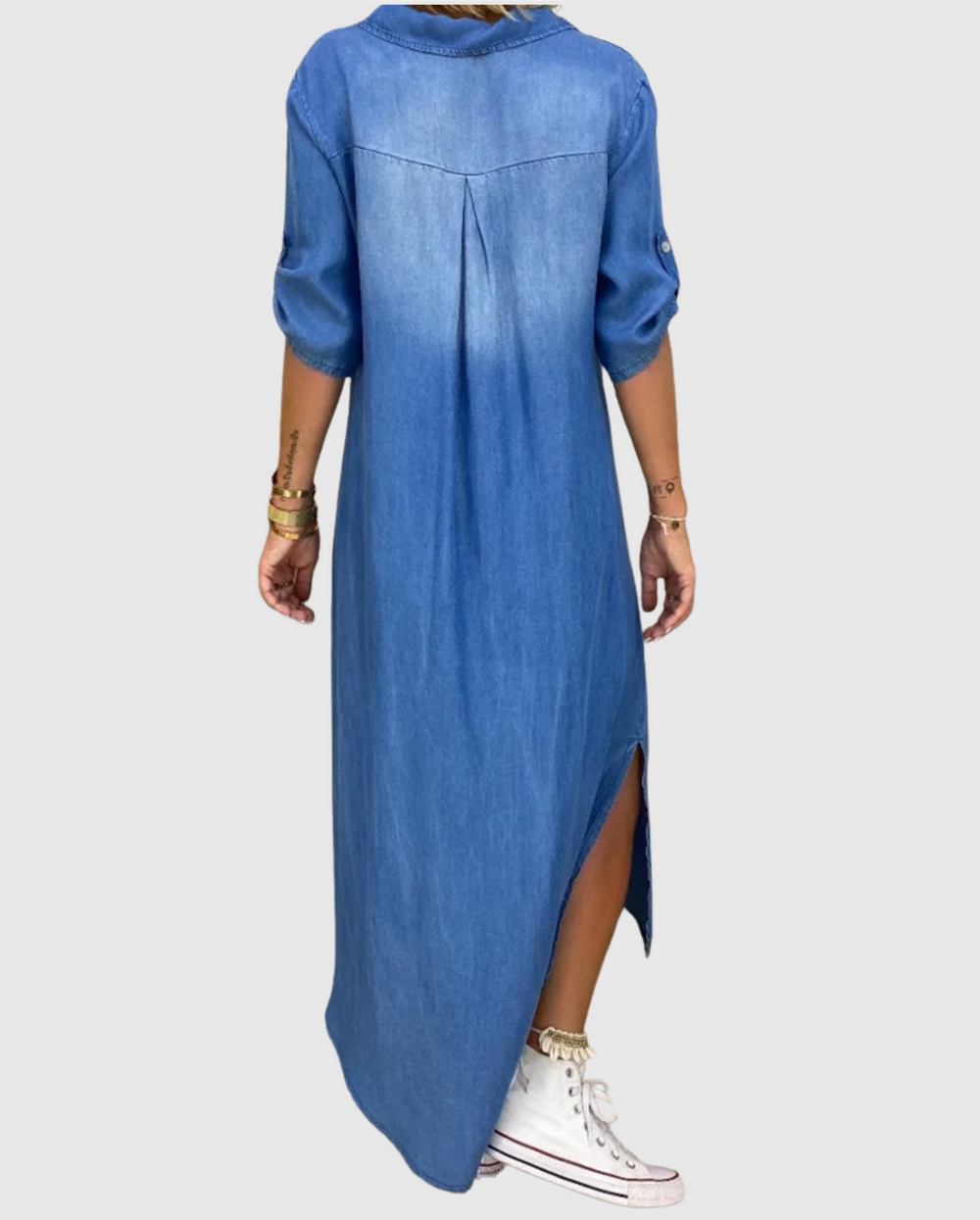 Marta - Dlouhé džínové šaty s bočním rozparkem
