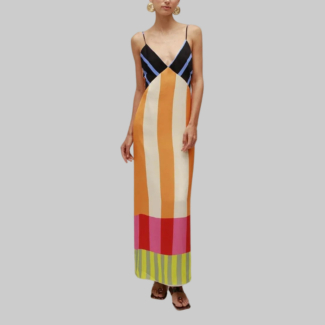 Linda - Letní maxi šaty pro ženy v boho stylu s pruhovaným potiskem