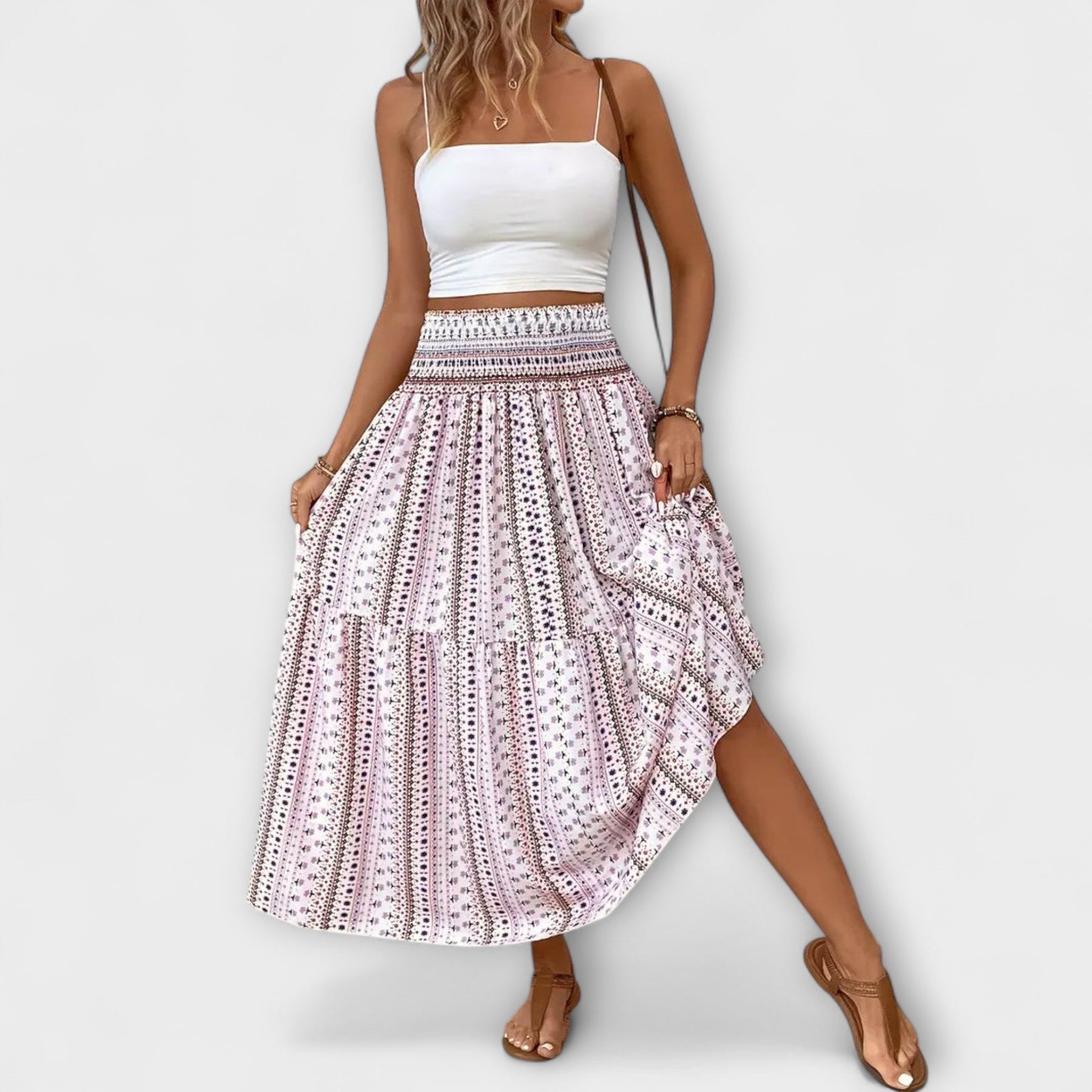 Albína - Midi sukně s boho potiskem