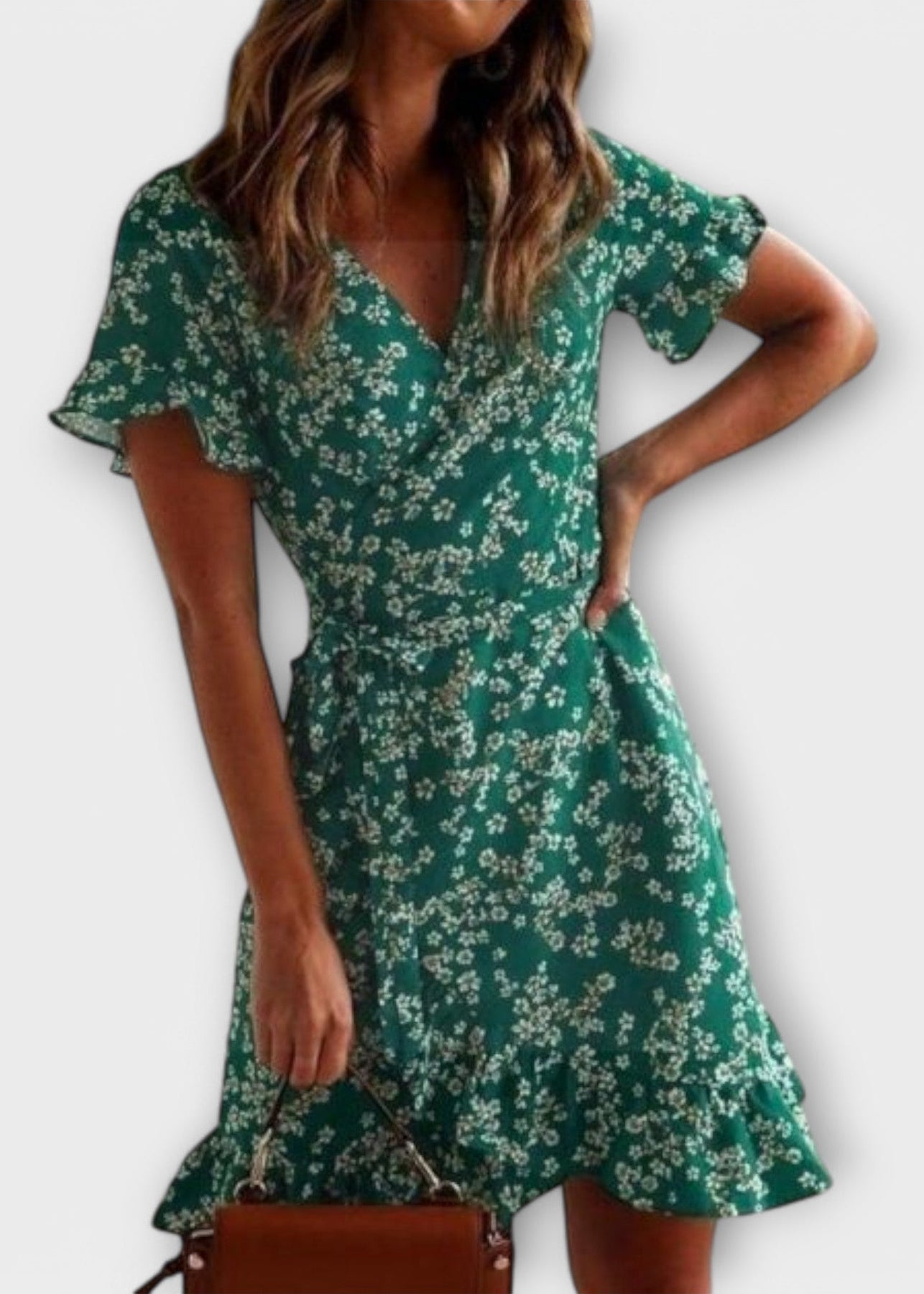 Dodajte svému šatníku nádech bohémského šarmu s šaty bohémského stylu Bohuslava. S živou zelenou květinovou potiskou a překříženým střihem, který zvýrazňuje siluetu, jsou tyto šaty ideální pro slunečné dny, neformální procházky nebo lehký letní vzhled.