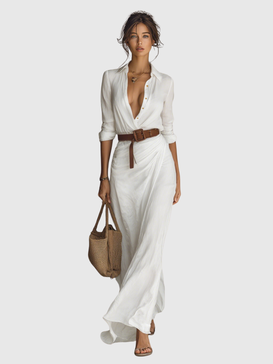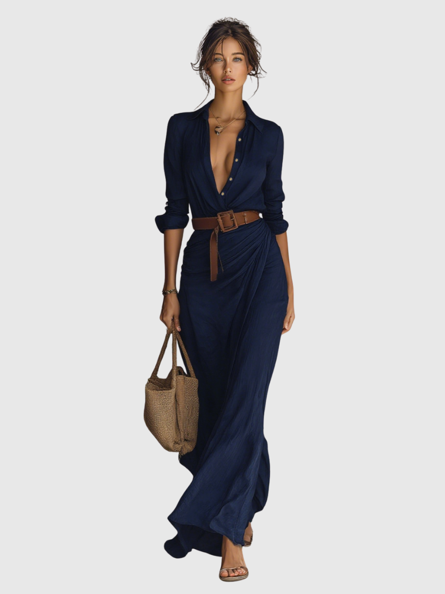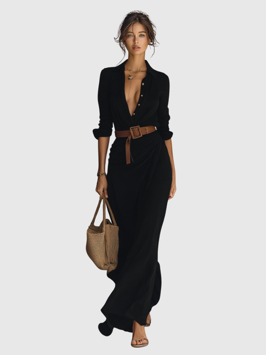 Dlouhé šaty Božena elegantního klasického designu s límcem, ideální pro jakoukoli příležitost. Tyto šaty byly navrženy tak, aby zvýraznily vaši siluetu a poskytly rafinovaný vzhled.