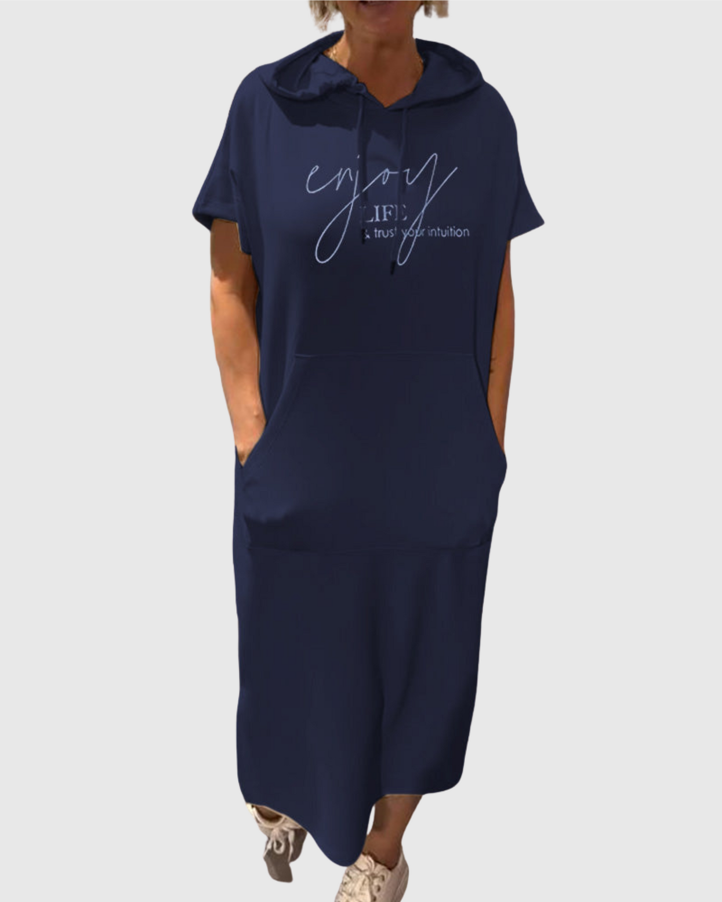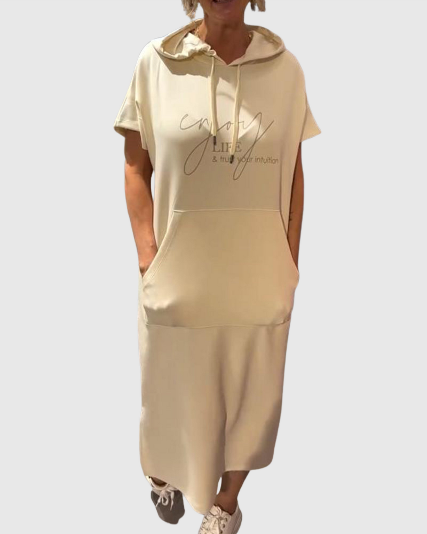 Dušana - Volné šaty s kapucí a ženským střihem