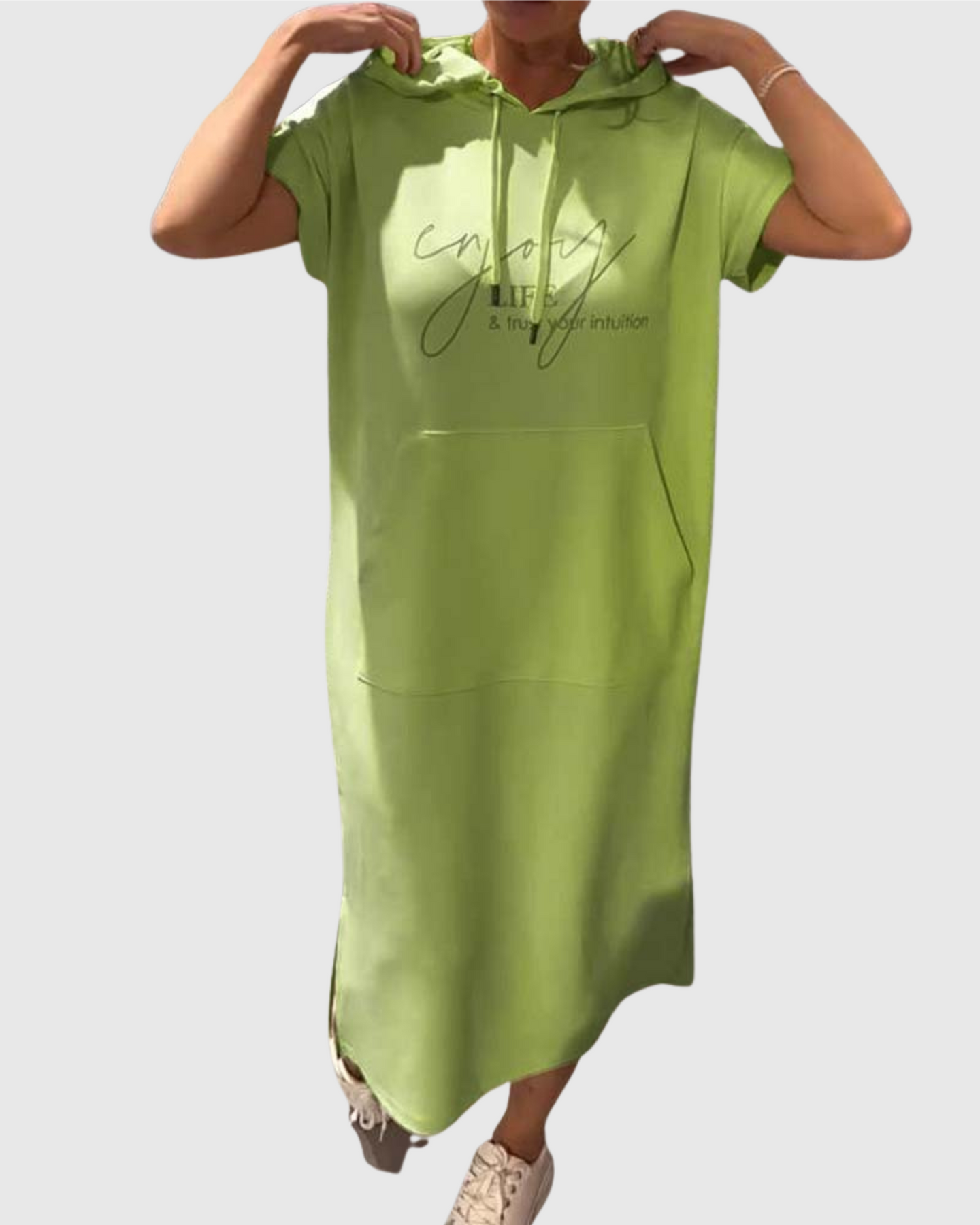 Dušana jsou šaty pro ty, kteří se chtějí cítit volně, pohodlně a zároveň elegantně bez námahy. S měkkým a elastickým střihem, křídovými rukávy a praktickou kapucí se stahovací šňůrkou jsou ideální na horké dny, každodenní dobrodružství nebo když chcete být nejlepší verzí sebe sama.
