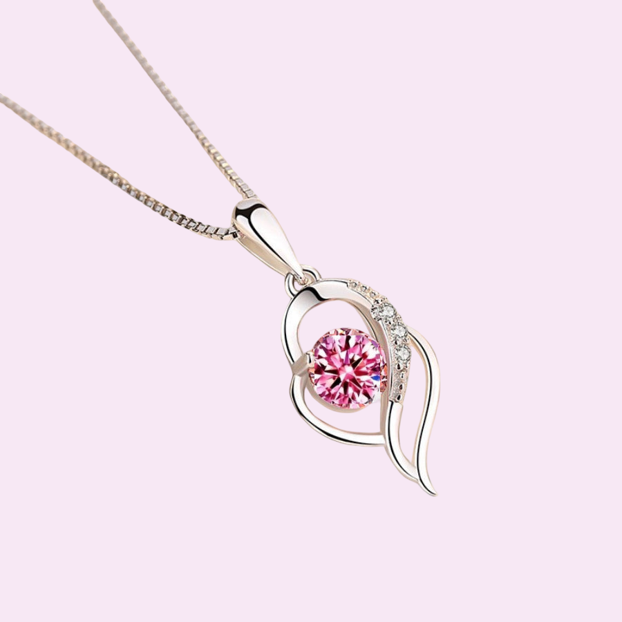 Tento elegantní náhrdelník spojuje jemnost a lesk v sofistikovaném a nadčasovém designu. Přívěsek má centrální třpytivý kámen, dostupný v krystalovém nebo hlubokém modrém odstínu, obklopený jemnými liniemi a harmonickými křivkami, které symbolizují plynulost a ženskost. Malé boční krystaly dodávají extra dotek luxusu, což činí tento kousek ideální jak pro každodenní nošení, tak pro zvláštní příležitosti. Náhrdelník, který má za cíl osvětlit jakýkoliv vzhled s diskrétní elegancí.