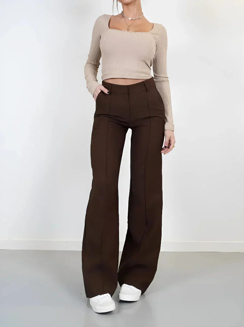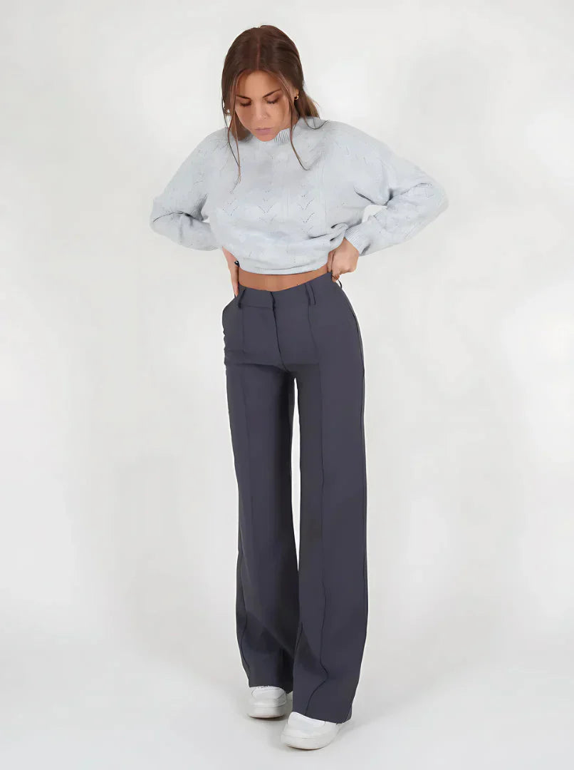 Buďte elegantní a pohodlná s kalhotami Isabella. S vysokým pasem, který zvýrazňuje siluetu, a širokými nohavicemi, tyto kalhoty modelují postavu a zároveň nabízejí výjimečné pohodlí. Ideální jak pro neformální příležitosti, tak pro sofistikované vzhledy, kombinují styl a praktičnost bez námahy.