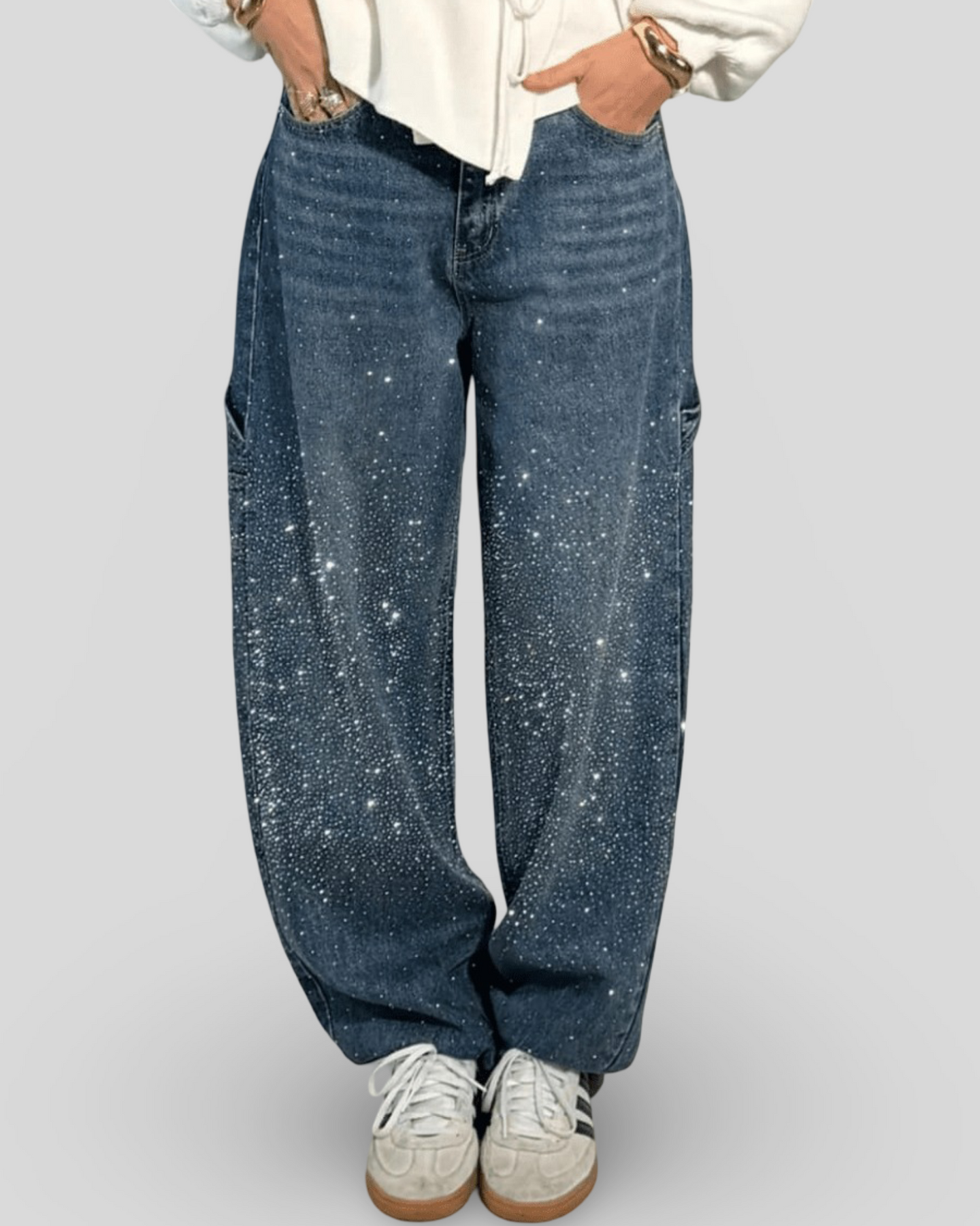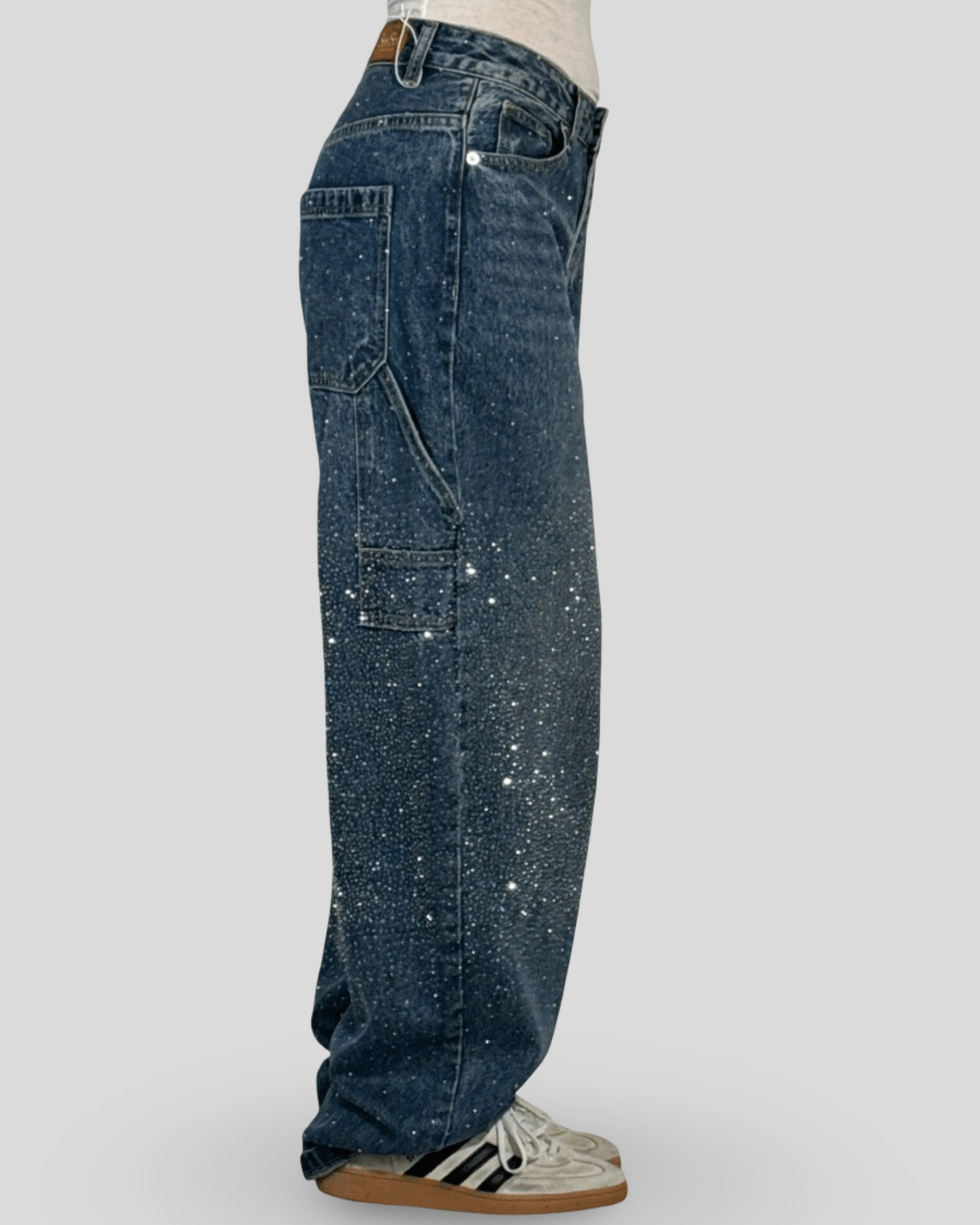 Julia - Džínové kalhoty ve stylu truhláře s třpytkami