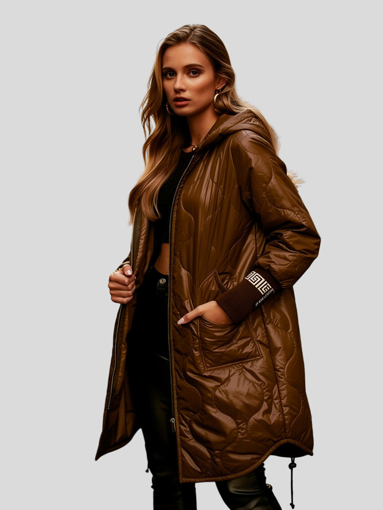 Pozvedněte svůj styl s naším Marie, kouskem, který kombinuje moderní sofistikovanost s maximálním pohodlím. Saténový povrch, strukturovaná kapuce a prošívaný design vytvářejí neodolatelný vzhled, ideální pro ty, kteří chtějí být v teple, aniž by ztratili eleganci. Detailně zpracované manžety a bezchybné střihy dělají z tohoto kabátu univerzální volbu, ideální pro městské, ležérní nebo módní outfity. Dokončete svůj vzhled brýlemi, doplňky nebo kabelkou a připravte se na to, že na sebe upoutáte pohledy, kamkoli půjdete.