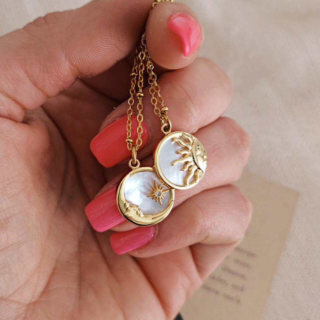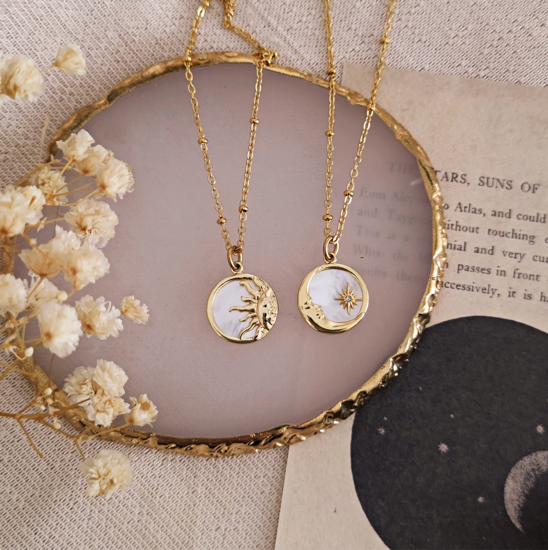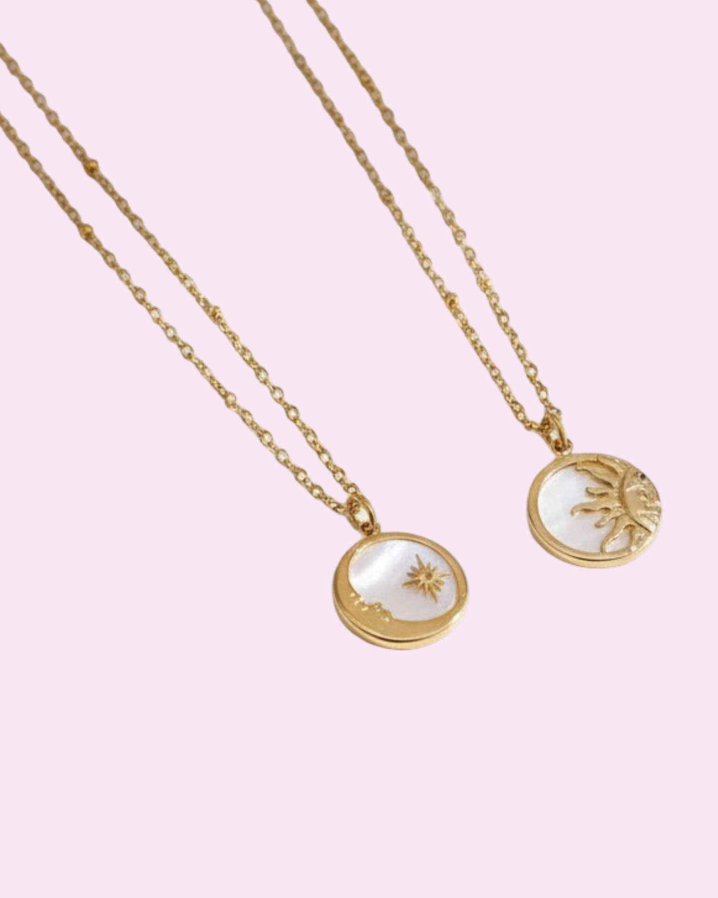 Náhrdelníky přátelství Slunce & Měsíc symbolizují dokonalé spojení mezi dvěma dušemi, které se navzájem doplňují, i když jsou odlišné. S jemným zlatým designem a přívěsky plnými významu, každý náhrdelník představuje rovnováhu, ochranu a věčné spojení. Ideální pro sdílení s nejlepší kamarádkou, sestrou nebo někým výjimečným, tyto náhrdelníky jsou víc než jen doplněk, jsou symbolem pravého přátelství, které překonává čas a vzdálenost.
