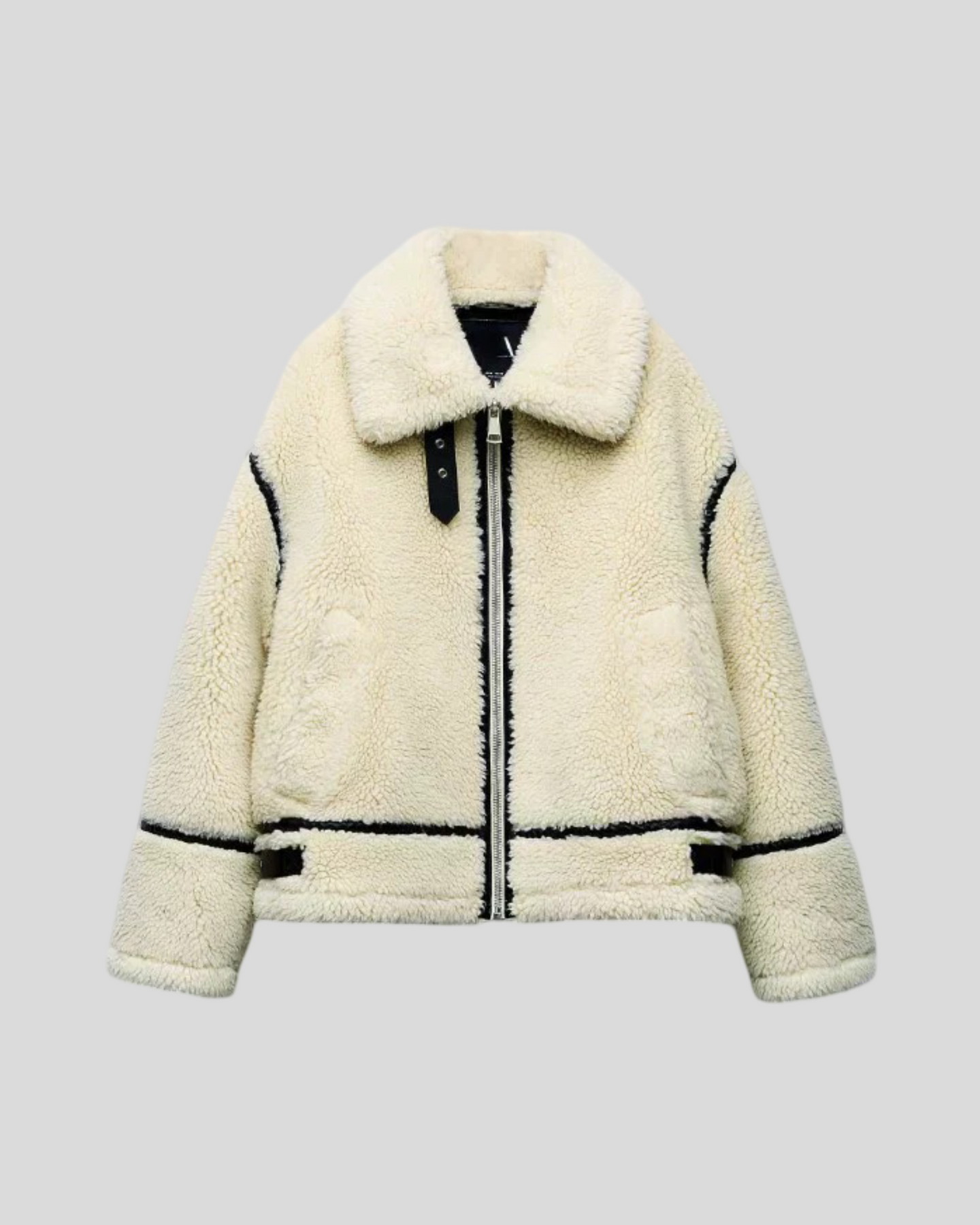 Kožich SOLANGE je dokonalou fúzí pohodlí, stylu a moderní elegance. S ultra měkkým teddy materiálem poskytuje tento kožich sofistikovaný a útulný vzhled, ideální pro chladné dny. Krátký design s vysokým límcem a kontrastními detaily dodává městský a současný nádech, což z něj činí klíčový kousek pro zimní outfity plné osobnosti. Perfektní pro nošení jak v městských prostředích, tak na elegantnějších příležitostech.