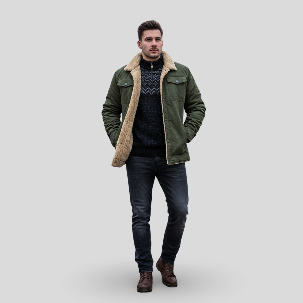 Čelíte zimě s důvěrou v kabátu Filip, robustním a elegantním modelu vyvinutém pro maximální tepelný komfort bez obětování stylu. S odolným vnějším materiálem a zcela zatepleným měkkým sherpa interiérem nabízí tento kabát vynikající izolaci, ideální pro chladné dny. Moderní design s funkčními kapsami a zatepleným límcem dodává vzhledu autenticitu a mužnost.