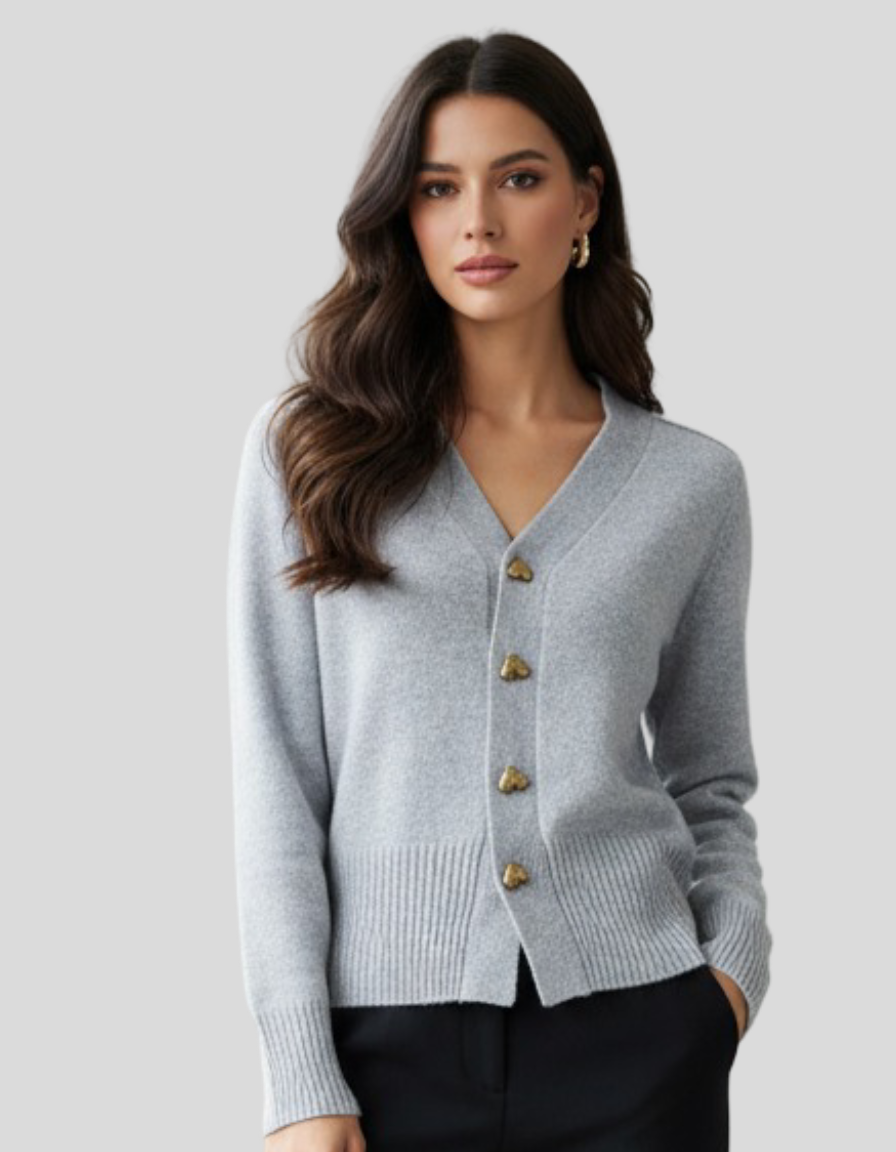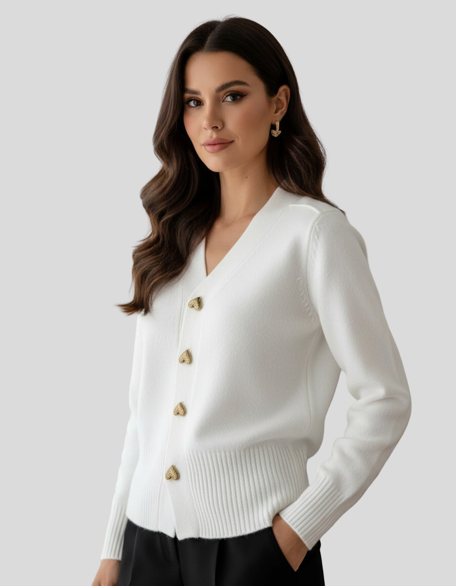 Tento kardigan je ideálním kouskem pro ty, kteří hledají sofistikovanost, aniž by se museli vzdát pohodlí. S elegantním a ženským designem se vyznačuje jemnými dekorativními knoflíky, přiléhavým střihem a jemnou pleteninou vysoké kvality. Perfektní pro nošení zapnutý nebo rozepnutý, snadno se přizpůsobí jak ležérním, tak sofistikovanějším vzhledům, čímž se stává univerzálním základem šatníku.