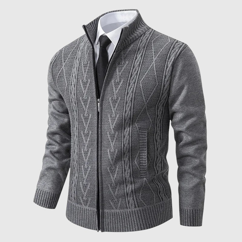 Jáchym – Pletený kabát s vysokým límcem a zipem