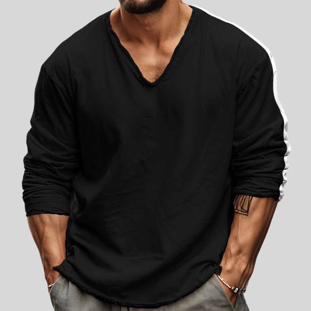 Nico - Volná košile s dlouhým rukávem a hlubokým V výstřihem pro muže