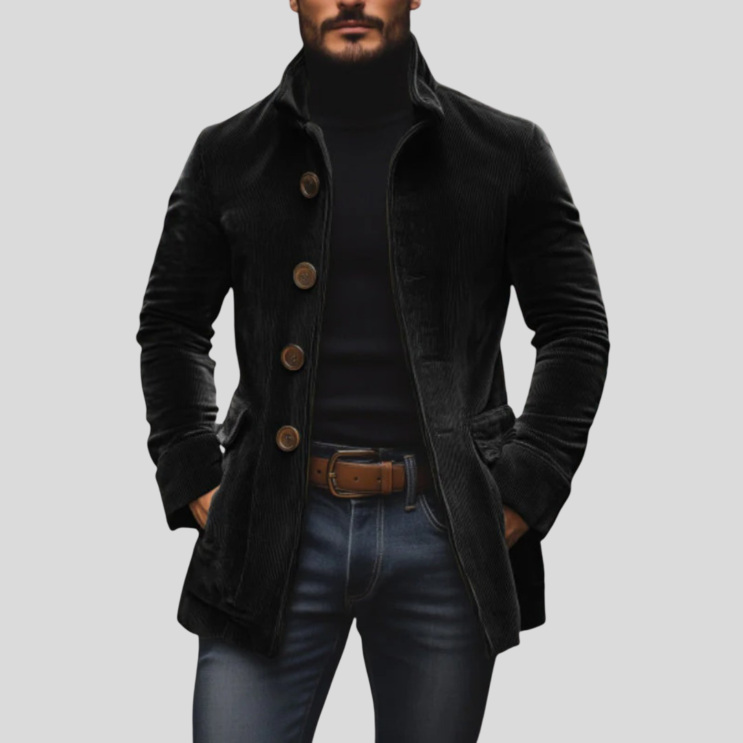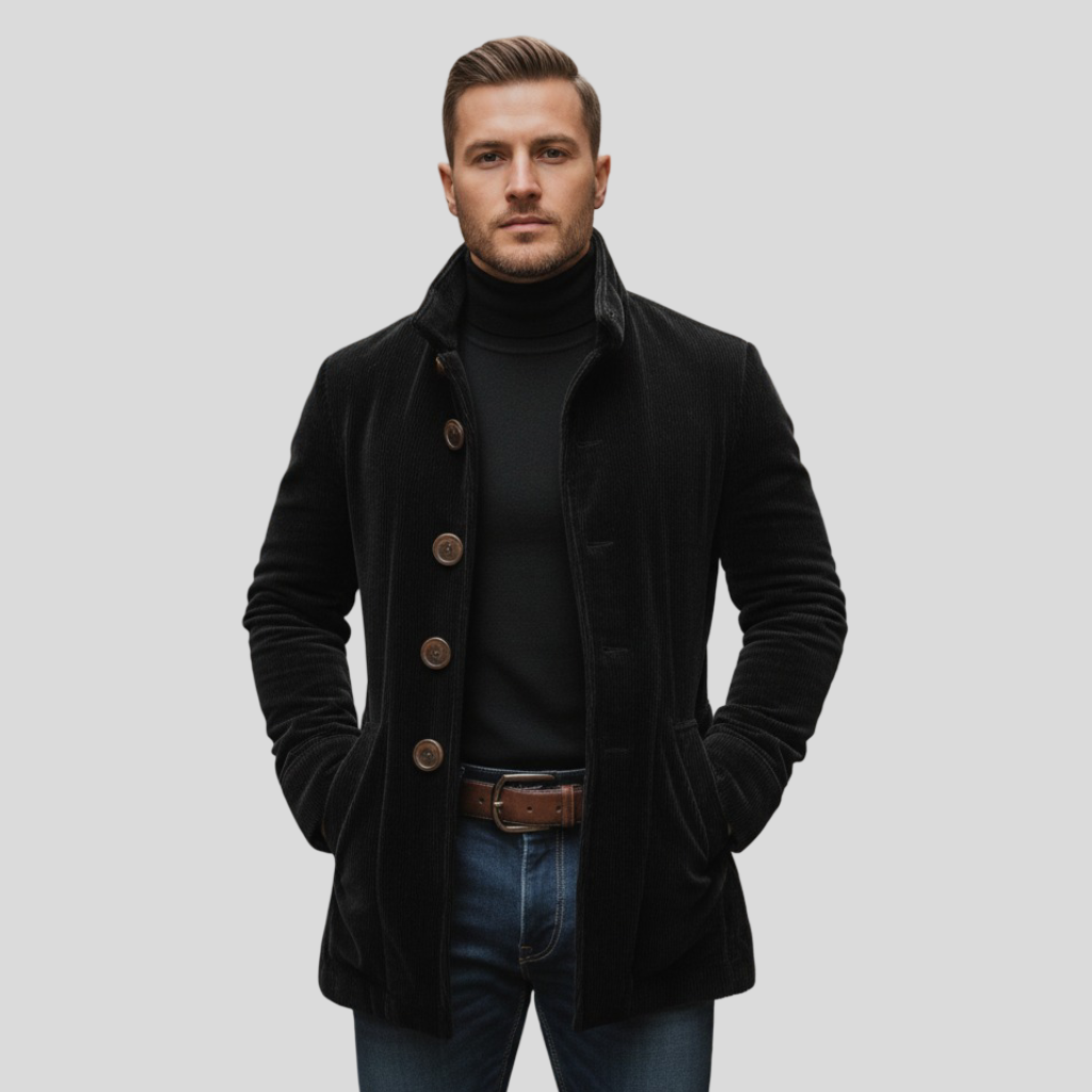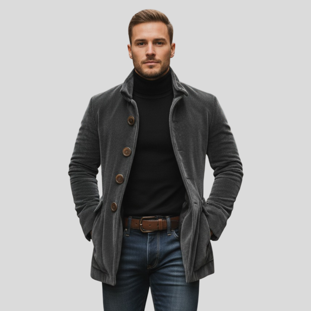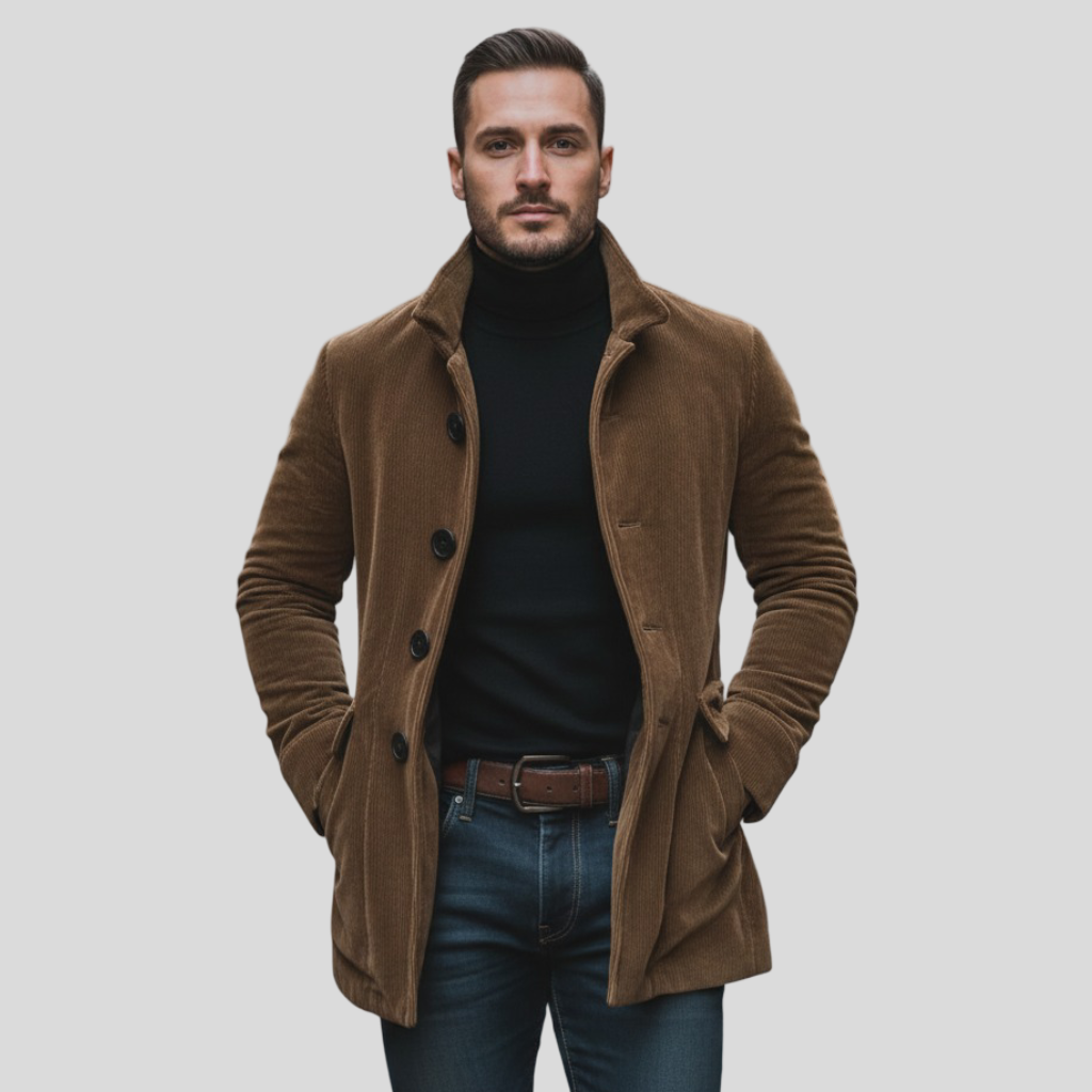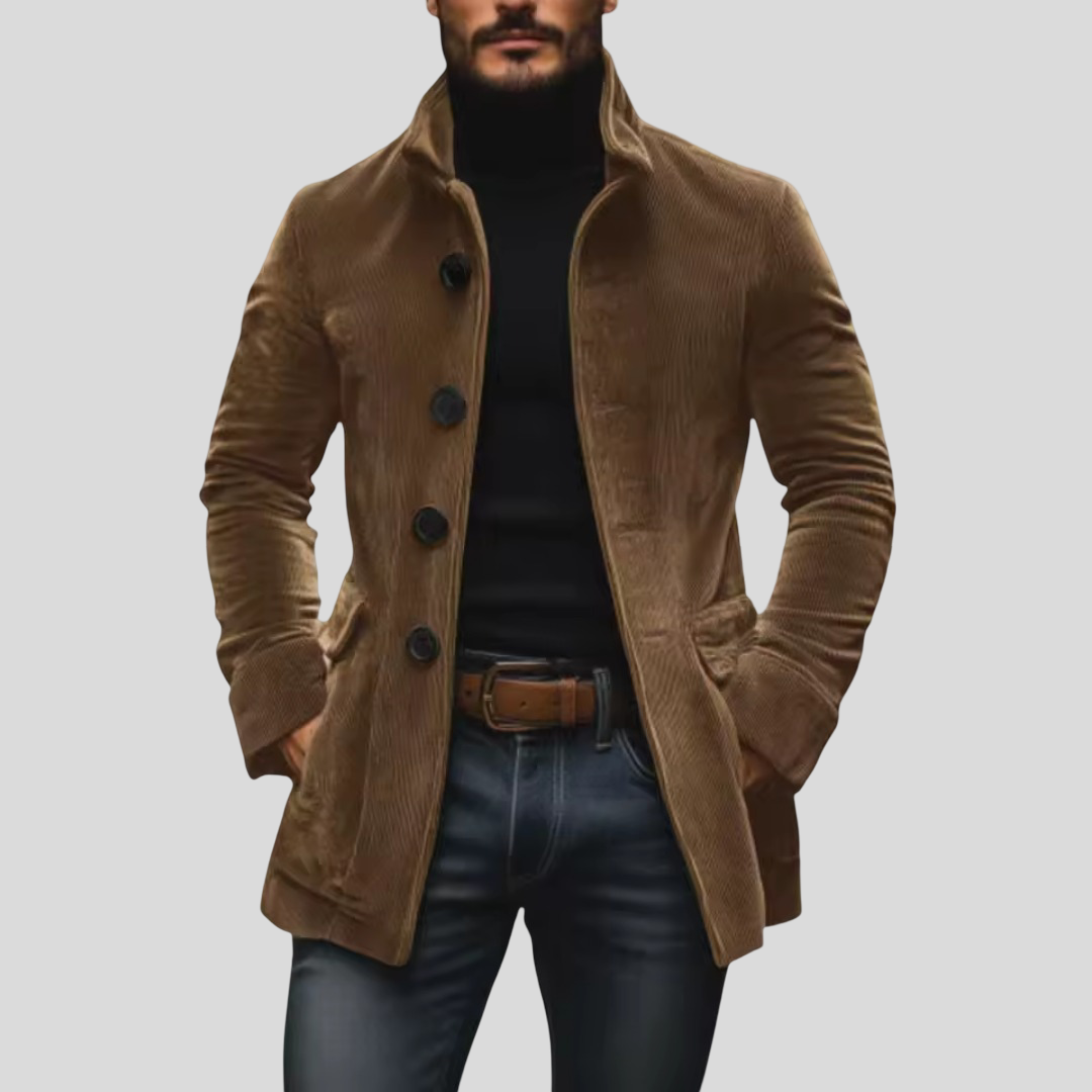 Kabát Jarmil kombinuje klasické kouzlo manšestru s moderním a strukturovaným střihem. Navržen pro muže, kteří si cení stylu a pohodlí, je ideálním kouskem pro zvýšení jakéhokoli podzimního/zimního outfitu, od neformálního po sofistikovaný. Vysoký límec a robustní knoflíky dodávají charakter a ochranu, zatímco měkká tkanina zajišťuje pohodlí po celý den.