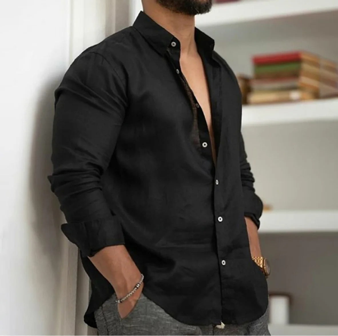 Tato košile zaujme svým uvolněným střihem, klasickou knoflíkovou légou a moderním límcem. Lze ji nosit rozepnutou přes tričko nebo zapnutou pro elegantnější vzhled. Je ideální volbou pro teplé dny, městské outfity i letní dovolené.