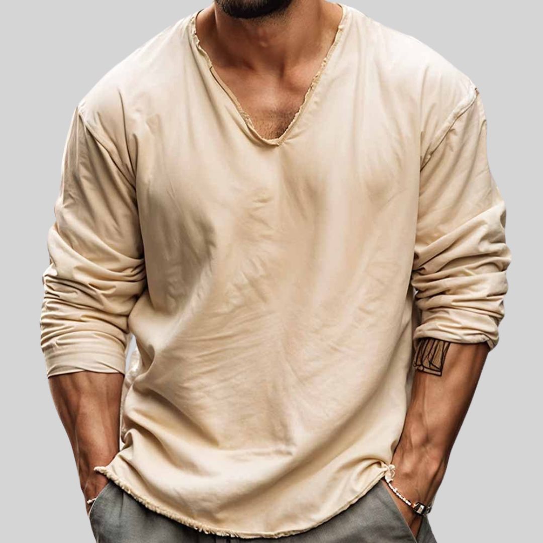 Nico - Volná košile s dlouhým rukávem a hlubokým V výstřihem pro muže