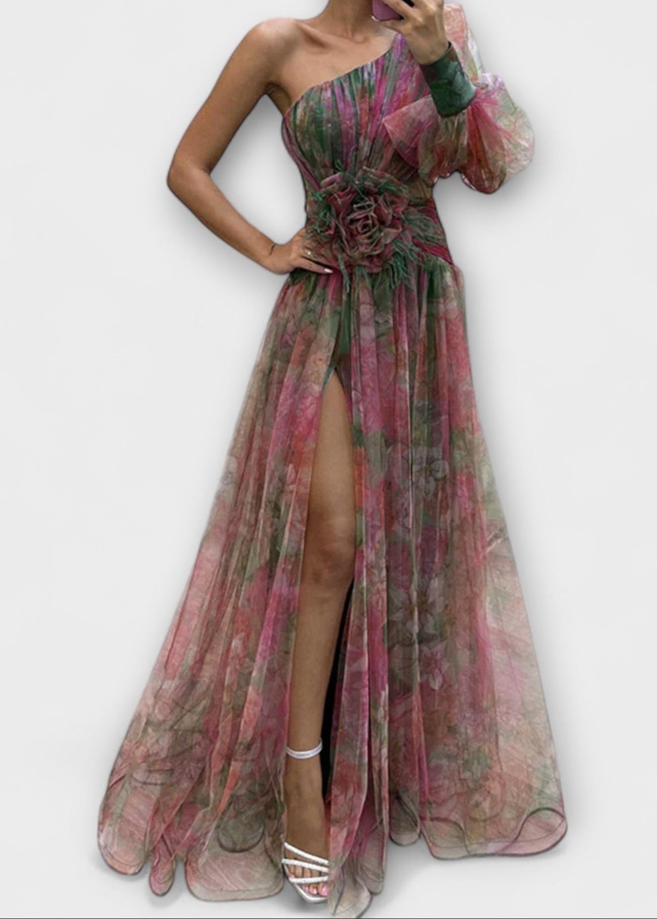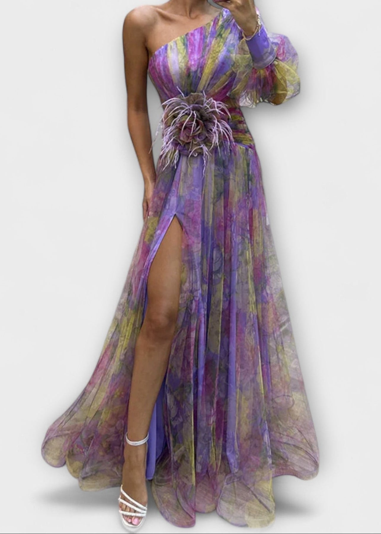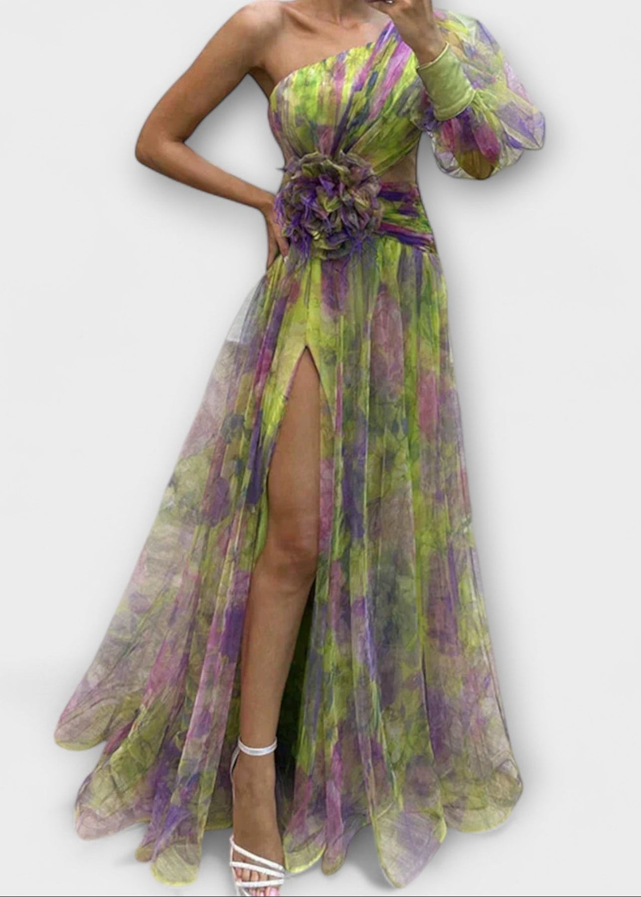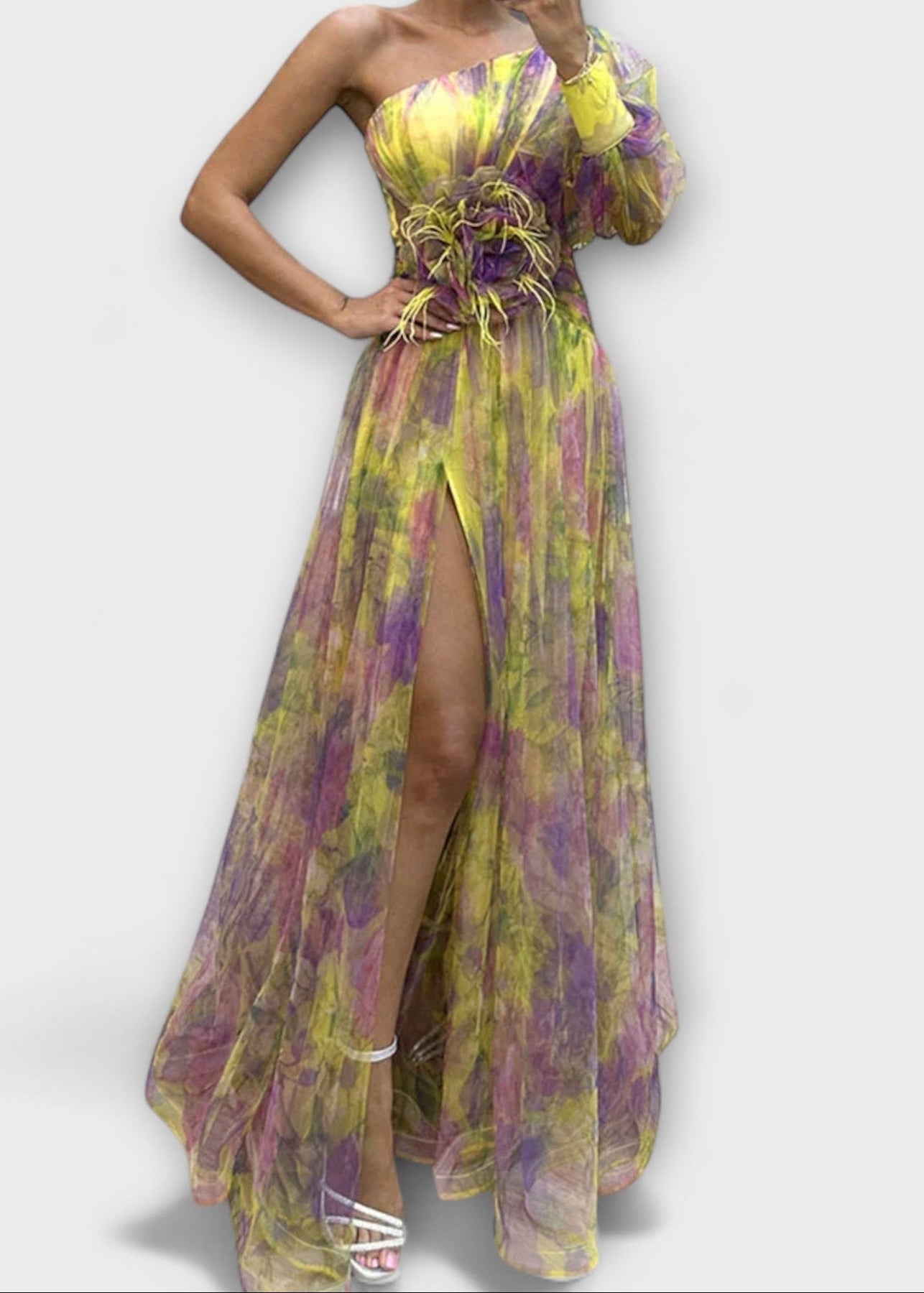 Amálie - Šaty s jedním rukávem a rozparkem
