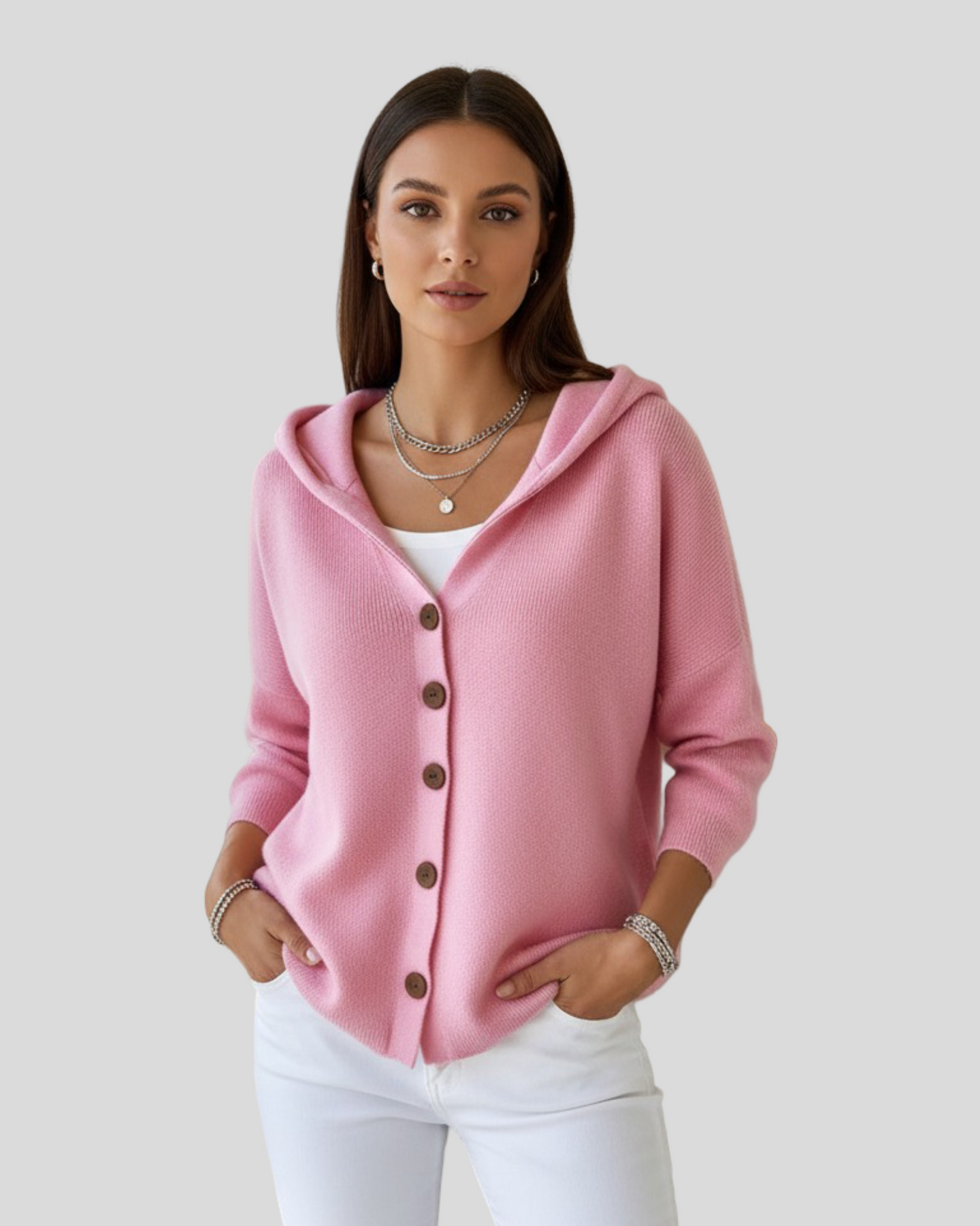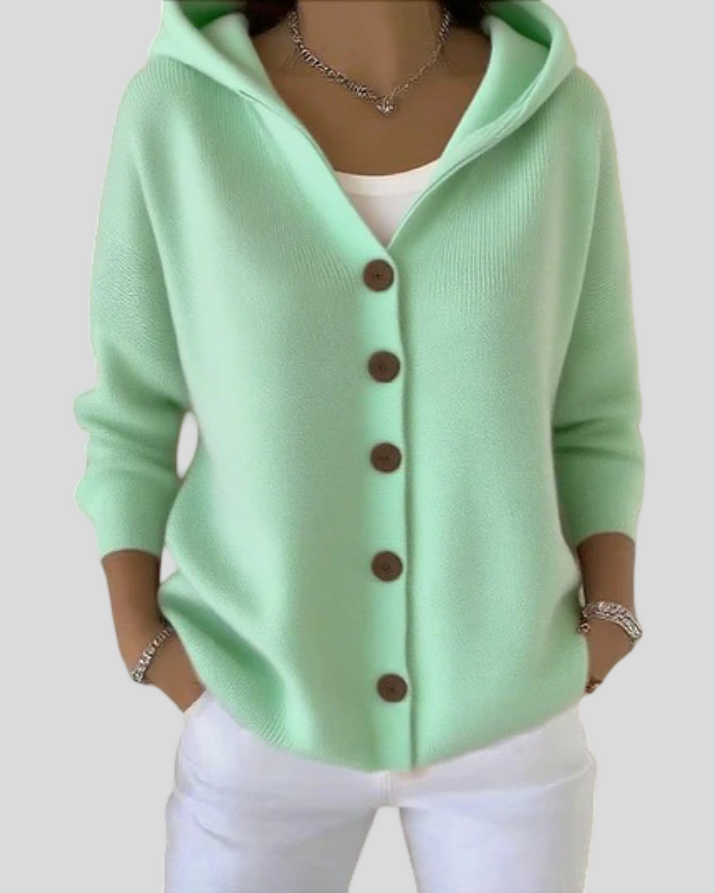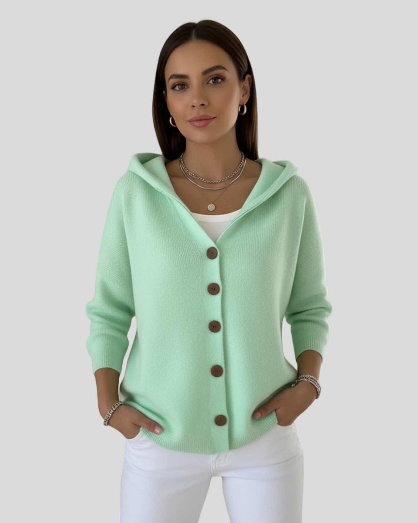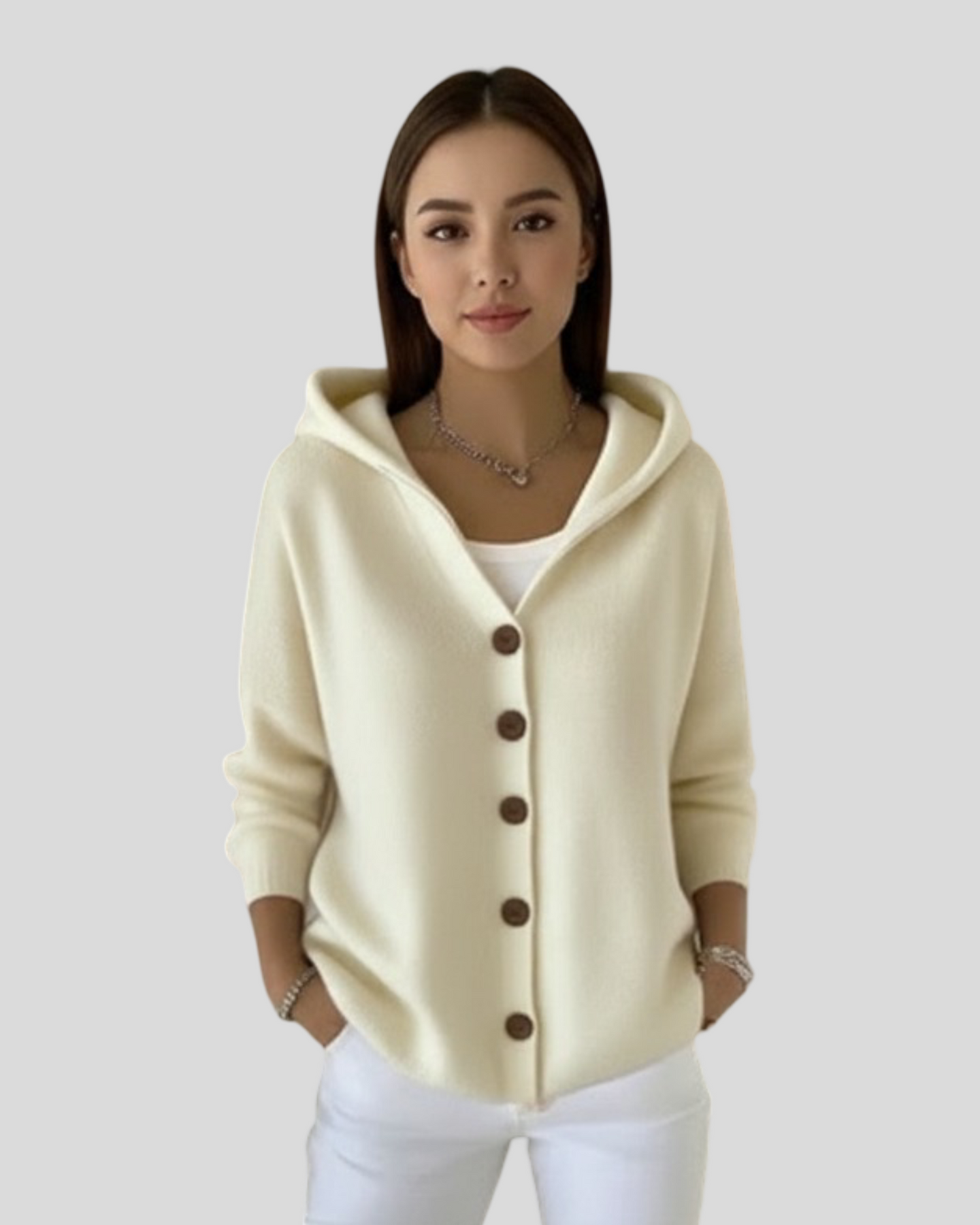 Kardigan Beata byl vytvořen pro ty, kteří hledají moderní, ženský a pohodlný vzhled. S jemným dotekem a vysokou kvalitou zpracování je tento kardigan s kapucí a dřevěnými knoflíky ideální pro vytváření sofistikovaných ležérní outfitů. Jeho jemná barva osvětluje jakýkoli outfit, což ho činí ideálním pro každodenní nošení i stylové městské procházky.